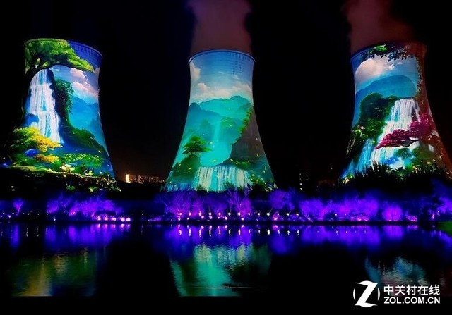张家口下花园发电厂建于1937年,随着时代变迁如今这座老发电厂摇身一变而成为了京北的又一个文化创意谷。张家口下花园蝶恋花文旅小镇世界首创的高塔投影秀运用12台NEC 4万流明4K双色激光旗舰级工程投影机,开创性地以近百米发电厂冷却水塔为背景,在超过10000平方米的高塔“屏幕”上,演绎了一场气势恢宏的传奇剧目,炫目的投影效果让世人叹为观止。