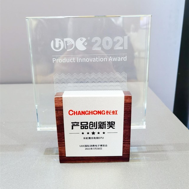 在7月30日-8月1日的UDE2021国际消费电子及未来生活博览会上,长虹在今年5月推出的面向年轻用户的轻享型激光电视D7U斩获产品创新奖。